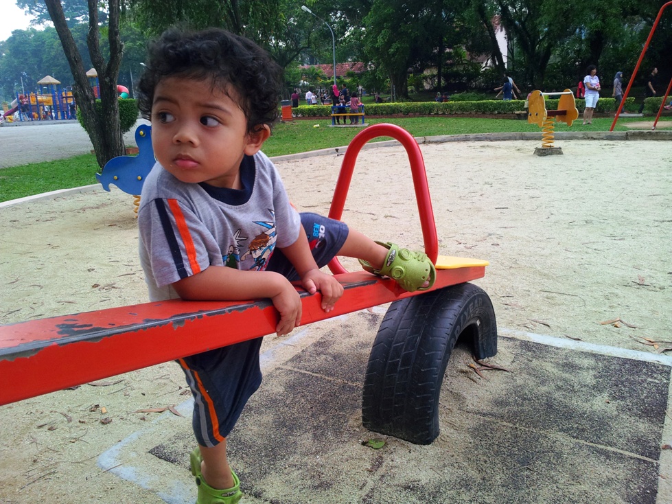| Budak comot. Baju, seluar dan kasut adalah barangan turun-temurun daripada Aqil. Jimat duit aku. |